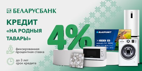 Подробную информацию о кредите можете получить в отделениях «Беларусбанка» или на их официальном сайте в разделе Кредиты/Потребительские кредиты/Кредит «На родныя тавары».